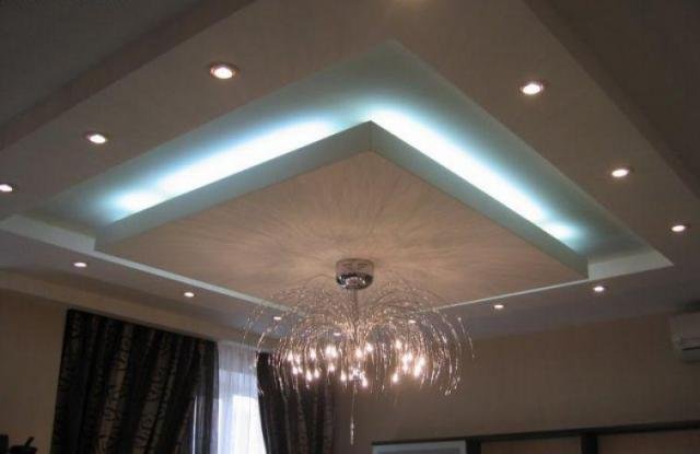 Натяжные потолки с подсветкой (когда соединение двух уровней подсвечивается светодиодной лентой или другими способами). Потолок с подсветкой может быть выполнен и в один уровень, например, при помощи специального профиля можно создать так называемые парящие натяжные потолки и по периметру установить светодиодную ленту.