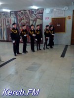При входе керчан встречали лицеисты, которые раздавали георгиевские ленты, и оркестр.