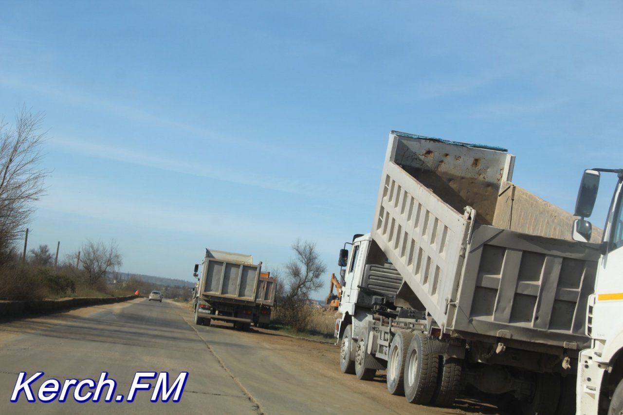 В Керчи около поворота на Приозерное продолжают активно работать земснаряды, которые добывают грунт и песок из воды. Как передает корреспондент Керчь.ФМ, на обочине стоят несколько самосвалов, которые увозят этот песок.
