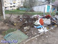 В Керчи, около дома по ул. Орджоникидзе, 118 а, устроили свалку мусора. Также во дворах обрезали деревья, ветки побросали на газоны и так и не убрали. Об этом сайту Керчь.ФМ рассказали постоянные читатели.
