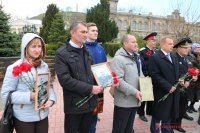Волонтеры прочитали стихи и руководство города вместе с гостями из Ейска возложили цветы к Вечному огню.
