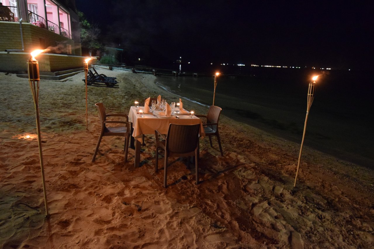 Роскошное коктейль-меню и блюда, приготовленные на открытом огне, порадуют гостей своим разнообразием и уникальностью приготовления. Здесь уместен любой отдых: зажигательные вечеринки, торжественные банкеты, пляжные дискотеки и уединенный вечер в кругу близких. Обслуживание гостей едой и напитками, так же осуществляется к шезлонгам на пляже.