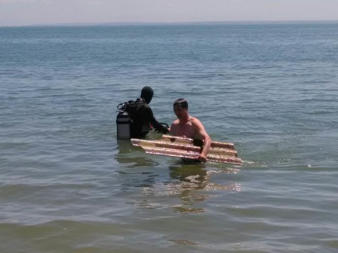 Недавно, спасатели обследовали Аршинцевскую косу. Со дна подняли объекты, представляющие опасность для купающихся, в основном крупные камни и бытовой мусор: шифер, арматура, бутылки.