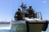 По легенде, в первый день тренировки катер, на котором находились условные террористы, должен был подойти к участку, где идет укрупнение и сборка судоходных арочных пролетов Крымского моста.