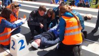 Третье задание - «Обучение приему первой помощи». Капитаны команды демонстрировали свои знания и методы по обучению первой помощи, а также поясняли, как работать с той или иной острой стрессовой реакцией, которую показывали статисты.