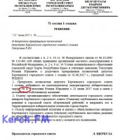На сайте крымского избиркома, Роман Теплухин признан избранным по 7 избирательному округу. Соответствующее Постановление размещено на сайте ведомства. Однако, в проекте решения керченского горсовета депутаты планируют прекратить полномочия депутата Теплухина по 8 избирательному округу.
