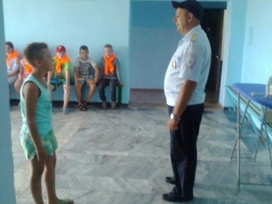Сотрудники полиции рассказывают ребятам о правилах поведения во время отдыха, особенно на водоемах, о пагубном воздействии на организм наркотиков, алкоголя и табака.