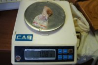 Вскрыв тайник, пограничники обнаружили два полиэтиленовых пакета с желеобразным веществом оранжевого цвета и резким запахом и четыре металлических подшипника.