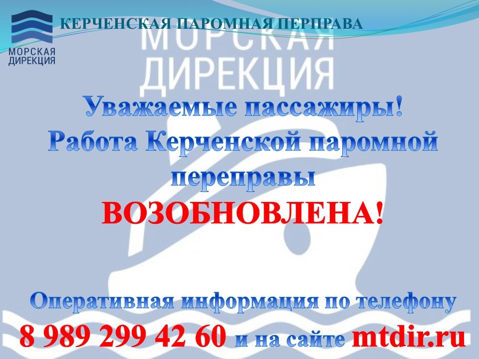 Керченская паромная переправа, сегодня, 4 июля днем, приостановила свою работу из-за шторма. Как пишет ООО «Морская дирекция» в 16.30 переправа возобновила свою работу, - передает Керчь.ФМ.