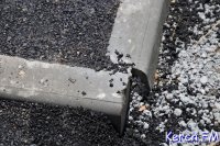 Также отметим, что в некоторых местах установили надломанные бордюры, чтобы они казались новыми их замазали сверху асфальтной крошкой.