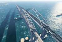 «Судоходный пролет Крымского моста уникален: такую габаритную конструкцию - длиной 227 метров, общим весом около 10 тысяч тонн - устанавливают в морских условиях впервые в отечественном мостостроении. Подмостовой габарит шириной 185 метров и высотой 35 метров обеспечит беспрепятственный пропуск всех судов, курсирующих через Керчь-Еникальский канал.