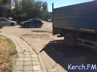 В Керчи, 20 июля на улице Ворошилова, во дворе многоэтажного дома №23, рабочие засыпали на дороге ямы землей, - передает Керчь.ФМ.