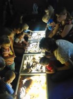 На занятиях дети знакомятся с различными материалами (гуашь, акварель, уголь, восковые мелки, пастель, фломастеры, карандаши) и техниками изображения (работа по сырому листу, гризайль, мозаика, гравюра и т.д.).
