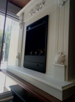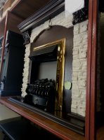 Нужно сказать, что пламя выполнено в каминах весьма реалистично, поскольку имитируются даже дрова!