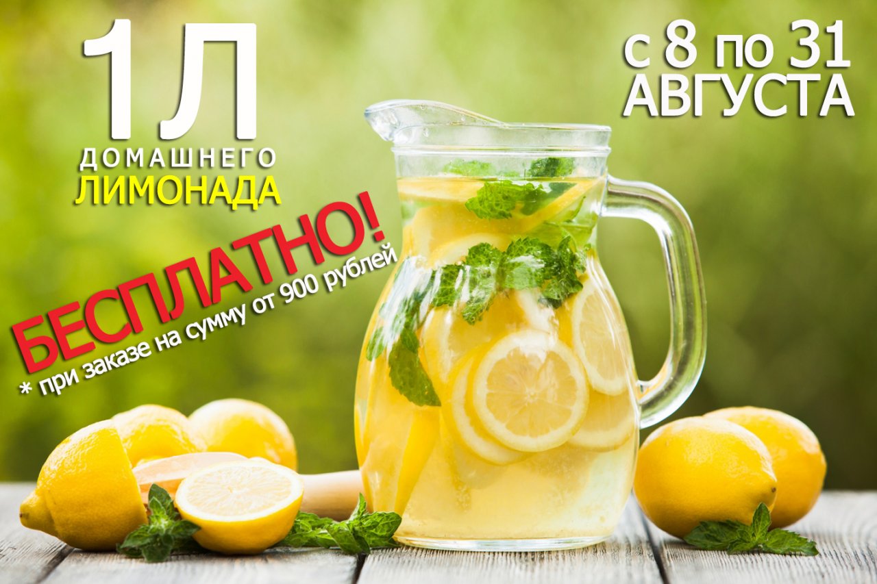 До 31 августа СДЕЛАЙТЕ ВКУСНЫЙ заказ в ЕшьБери на сумму от 900 рублей и ПОЛУЧИТЕ 1л натурального домашнего ЛИМОНАДА БЕСПЛАТНО!