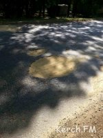 В редакцию Керчь.ФМ постоянные читатели сообщили, что на Вокзальном шоссе ямы засыпали песком. Чтобы обозначить яму, над ней установили табличку с надписью «Яма», а внизу подписали «Спаси и сохрани».