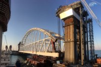 Плавучие опоры доставили ночью железнодорожный арочный пролет Крымского моста в Керченский пролив - к фарватерным опорам - и завели в створ моста для подъема на проектную высоту. Многочасовая поэтапная операция по монтажу арки продолжится в течение следующих суток. Об этом сообщает пресс-служба Упрдор «Тамань», - передает Керчь.ФМ