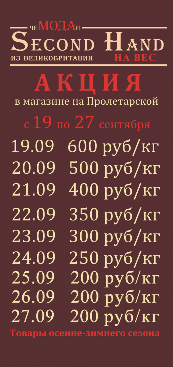 С 19 по 27 сентября в магазине на Пролетарской будет проходить акция.