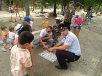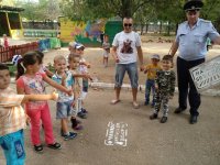 Сотрудники ОГИБДД в игровой форме провели для ребят викторину по знанию и соблюдению Правил дорожного движения, в которой также активно приняли участие и родители. Участникам мероприятия напомнили о необходимых мерах безопасности при переходе проезжей части, а главное заботе о юных пешеходах.
