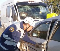 Предположительно, водитель автомобиля «Lada Kalina» ехал в сторону Симферополя не справился с управлением, выехал на полосу встречного движения, вследствие чего машина столкнулась в «лобовую» с автомобилем «Mercedes Sprinter».