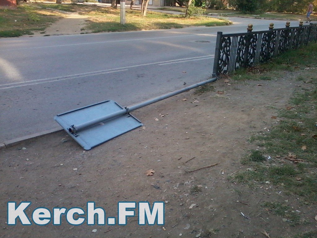 В редакцию Керчь.ФМ постоянная читательница прислала фотографии и сообщила, что ночью в районе остановки «Сильпо» по улице Блюхера неизвестные сломали дорожный знак.