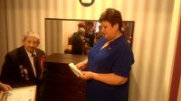 В эти дни поздравить ветеранов приехали заведующая отделением №4 социального обслуживания на дому ГБУ РК «Комплексный центр социального обслуживания граждан пожилого возраста и инвалидов г.Керчи» Калачева Марина Николаевна, специалист по социальной работе Сычук Маргарита Юрьевна и социальный работник Гаврилюк Татьяна Георгиевна. Им вручили поздравления Президента Российской Федерации Владимира Владимировича Путина.