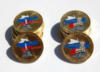 - монеты номиналом 2рубля из серии города- герои Керчь и Севастополь, номиналом 10 рублей г.Олонец;