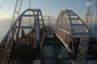 Автодорожная арка Крымского моста поднята на фарватерные опоры и надёжно закреплена на проектной высоте - 35 метров от воды. В полдень судоходство в Керчь-Еникальском канале возобновлено в обычном режиме - на 18 часов раньше запланированного срока. Об этом сообщает инфоцентр «Крымский мост», - передает Керчь.ФМ.
