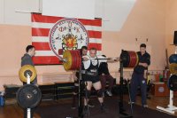 В жиме штанги лежа команда спортивного клуба "Воспоро" заняла 1 место 60 очков с суммой 535, 30 баллов и получила Кубок. Второе место заняла команда магазина спортивного питания "Богатырь" 21 очко с суммой 184, 1 баллов и третье место получила команда спортивного клуба "Кентавр" 21 очко с суммой 181, 09 баллов.