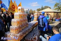 В Керчи на праздновании Дня народного единства, на площади Ленина, присутствующим раздавали угощения. Людям раздали тысячи пол-литровых бутылок лимонада крымского производителя и около тысячи стаканов чая из большого самовара.