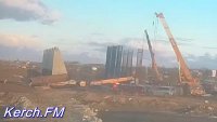 На строительстве автоподходов к Керченском мосту упал подъемный кран