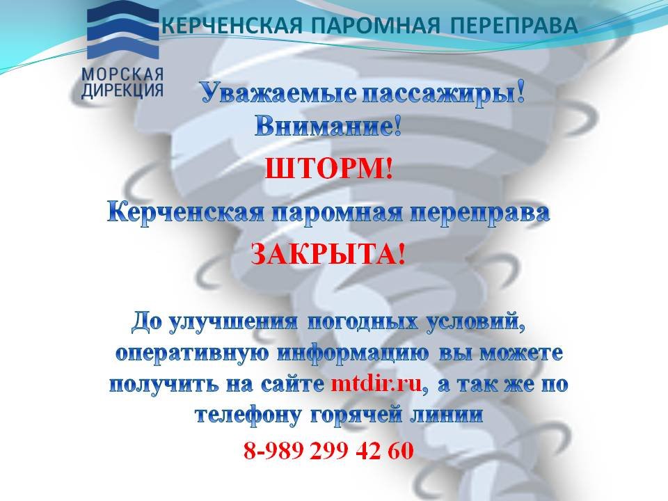 Керченская паромная переправа только, 21 ноября в 15.20, приостановила свою работу. В Керченском проливе  - шторм.