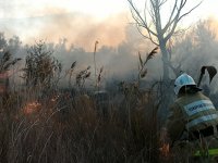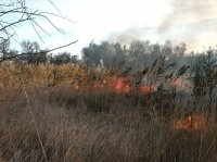 По прибытии выяснилось, что произошло возгорание бытового мусора возле дороги, а впоследствии - загорание сухой травы, камыша и деревьев в лесополосе.