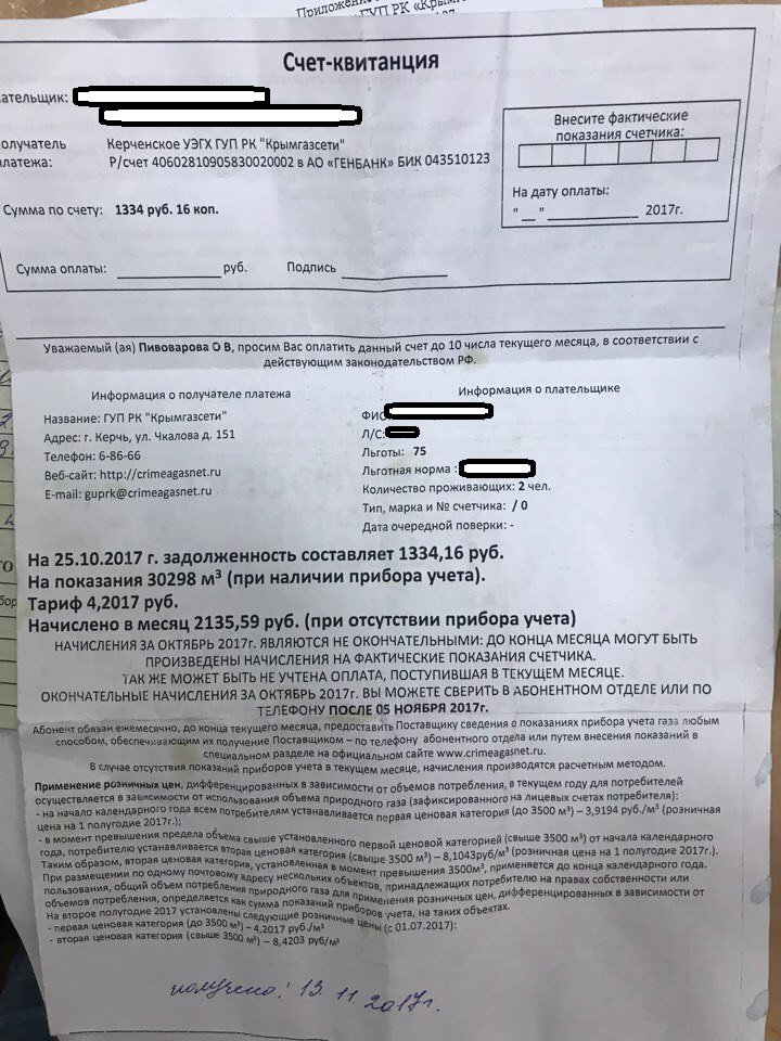 Как рассказала керчанка, женщина в «Горгазе» расписала ей в книжке, за что у нее долг, а также обозначила, что у нее стоит плита, колонка и котел.