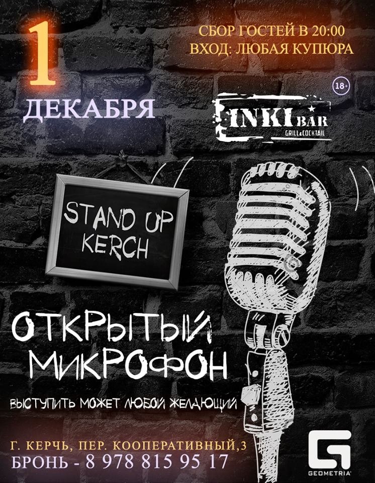 Друзья) 1 декабря в 20.00 Stand Up в Гриль - баре «INKI».