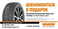 Шинный центр «VIANOR» по адресу: г. Керчь, ул. Вокзальное шоссе, 44 и ул. Чкалова, 147А приглашают Вас на бесплатный шиномонтаж при покупке комплекта шин Nokian tyres!