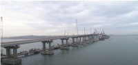 Мостовое полотно под автодорогу - это нить металлоконструкций протяженностью почти 17 км (дорога на участке сопряжения с керченским берегом идет по насыпи). Их общий вес - более 100 тысяч тонн. На морском участке от тузлинской косы до острова Тузла сборка пролетов велась методом поперечной надвижки, эти работы завершены в ноябре. На участках от острова до фарватера и от фарватера до керченского берега пролеты сооружаются методом продольной надвижки: укрупнение сегментов идет на суше, затем нить продвигается в акваторию по скользящим направляющим с помощью мощных домкратов.