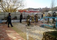 Керченские сотрудники МЧС провели пожарно-тактические занятия по локализации и ликвидации условного пожара в Храме Казанской иконы Божьей Матери в посёлке Подмаячный.