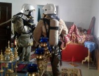 Согласно тактического замысла, в результате неосторожного обращения с огнем в помещении алтаря Храма произошло условное возгорание мебели, деревянных конструкций. Учитывая тот факт, что помещение несет большую пожарную нагрузку, существовала угроза быстрого распространения огня.