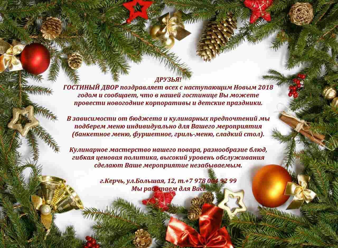 Гостиный двор поздравляет всех с наступающим Новым 2018 годом и приглашает провести предновогодние корпоративы и детские праздники