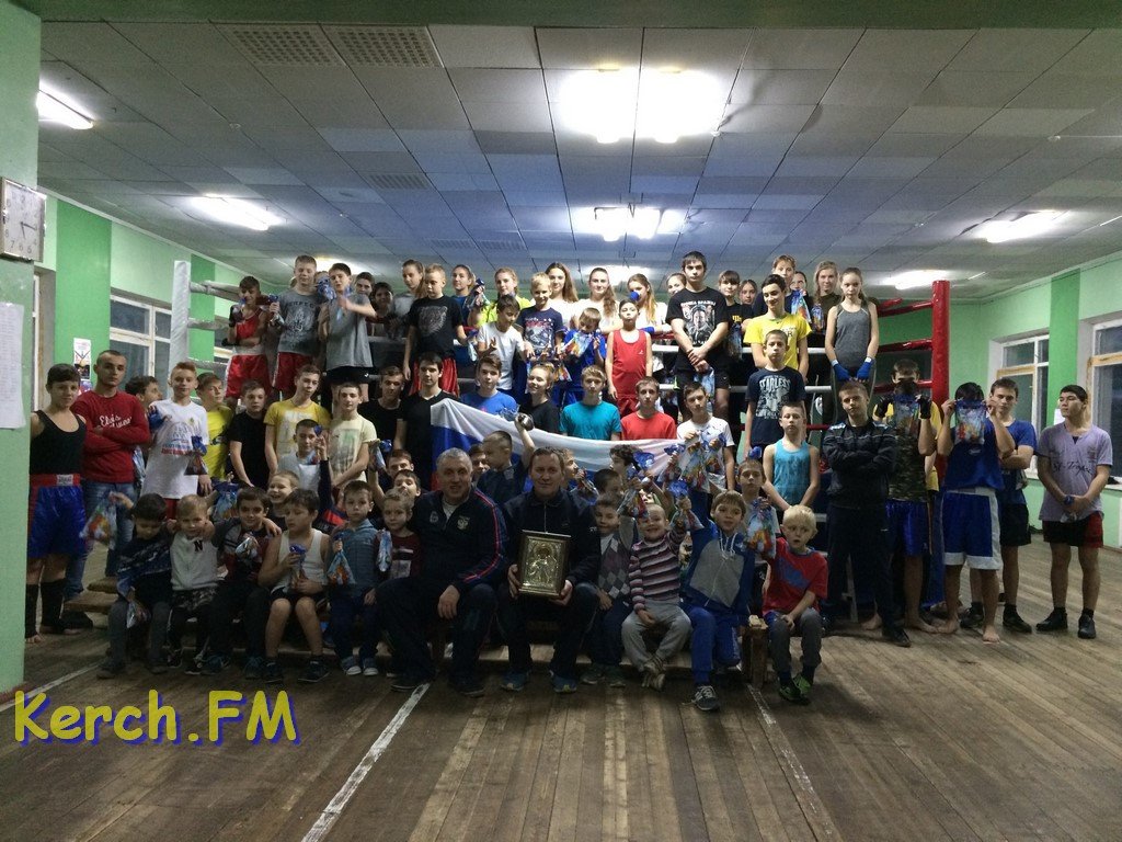 На снимке: дети спортсмены с подарками от святого Николая и взрослая команда боксеров. Крымская Региональная Федерация спортивных и боевых видов единоборств имени Георгия Победоносца.