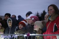 Керчан, как и в центре города, встречали огромные надувные снеговики, Дед Мороз и Снегурочка. Глава администрации поздравил керчан с наступающими праздниками. Выступили танцевальные коллективы «Алиса» и «Экстрим». Также прошло небольшое театрализованное представление.