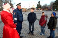 В преддверии новогодних и рождественских праздников сотрудники полиции провели необычную встречу с детворой на центральной улице города Керчи. Взрослых и детей приветствовал Полицейский Дед Мороз. Об этом сообщает пресс-служба УМВД России по г. Керчи, - передает Керчь.ФМ.