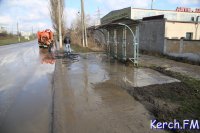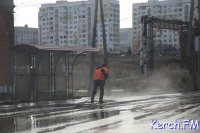 Коммунальщики Керчи мыли тротуар и ограждения на «АТП»