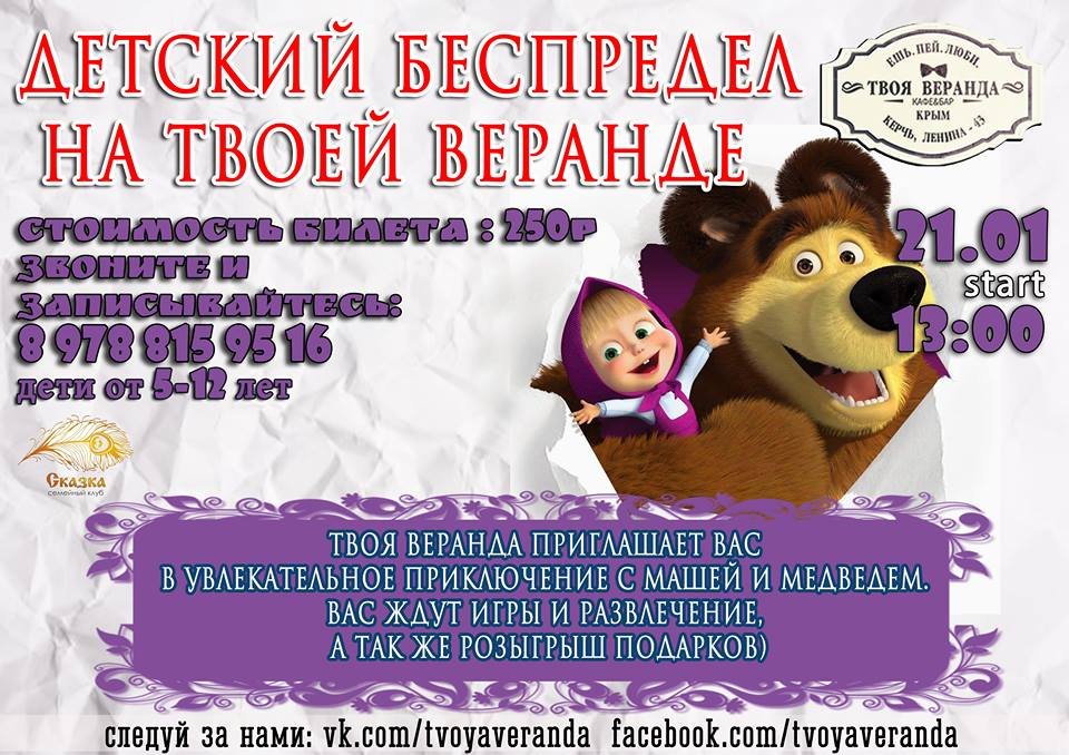 «Твоя Веранда» приглашает Тебя в увлекательное приключение с Машей и Медведем.