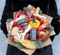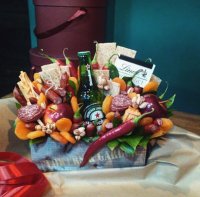 Оригинальные и вкусные мужские букеты с разным наполнением: колбасы, сыры, овощи, фрукты, фисташки, пиво и виски, зелень и многое другое!
