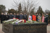В Керчи 22 февраля, накануне Дня защитника Отечества, а также в день, предшествующий 100-летнему юбилею создания Рабоче-крестьянской Красной армии и флота, которые были созданы 28 и 29 февраля 1918 года, прошло возложение цветов.