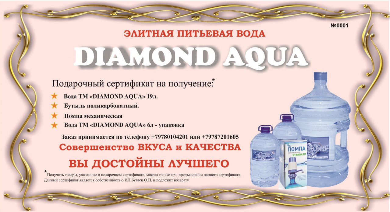 Подарочный сертификат от службы доставки воды «DIAMOND AQUA»