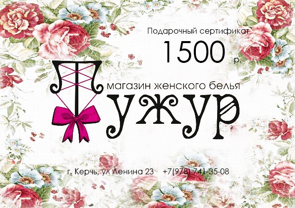 Подарочный сертификат от магазина нижнего белья «Тужур» на 1500 рублей