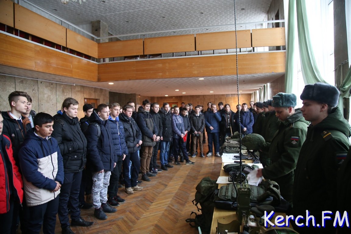 В Керчи 27 февраля в КЦ Богатикова молодых парней призывали служить в армии по контракту. Учащимся техникумов и колледжей города рассказывали, как поступить на контрактную службу и сколько длится контракт. Первый контракт все подписывают на два года. По желанию его можно продлить на год, три, пять или десять лет.
